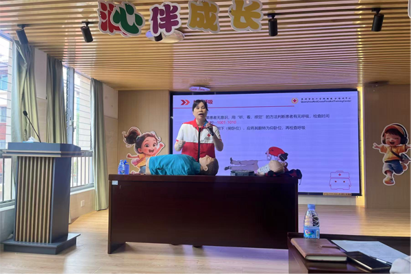 参训人员前期在“人人急救”APP完成学习并通过理论考试,带着扎实理论基础进入当天的实操环节。市红十字现场救护培训中心专业讲师团队结合中心工作实际,重点围绕“儿童(成人)意识判断与急救”“气道异物梗阻急救”等实用技能开展教学。借助人体模型,讲师现场演示了儿童(成人)意识判断、婴儿背部拍击与胸部冲击法等核心技能。