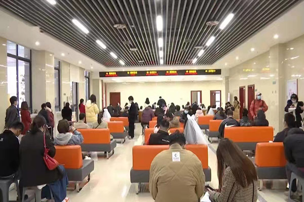婚姻登记处提前筹划、多措并举,既全力满足新人们的登记需求,又避免了群众扎堆聚集,今年“2.14”、 “2.22”登记总量都超300对。